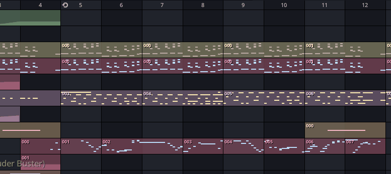 Another difference is that, when opening in the piano roll or automation editor, patterns are shown with the rest of the song. In other DAWs, clips are editing in a vacuum, without seeing the outside context. In KiraStudio, the piano roll or automation editor are basically an extreme close up on a track.